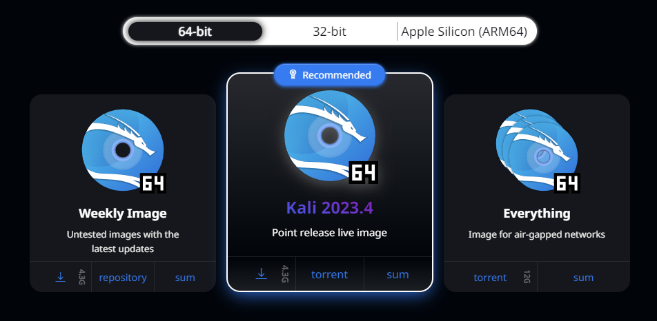 Navigate to https://kali.org and click on “get Kali” along the top of the page.