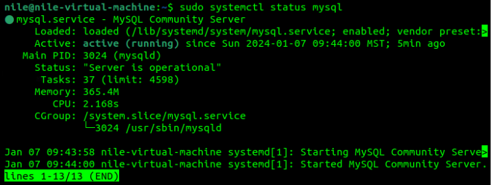 This is what your terminal should look with “mysql_root_password” being the password you want to use for the root user instead.