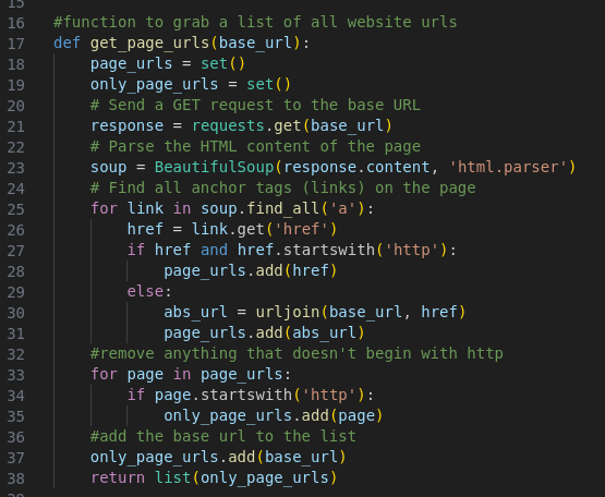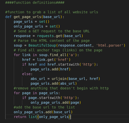 This function takes in a URL and creates a list of all the links on the website the URL links too. This URL would be the homepage and the list of links would be any pages that can be accessed from the homepage.