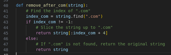 This function takes in a list of strings which are email address that have text still attached to them from the website. This function then takes these email addresses and removes anything after .com and creates a new list of cleaned emails.